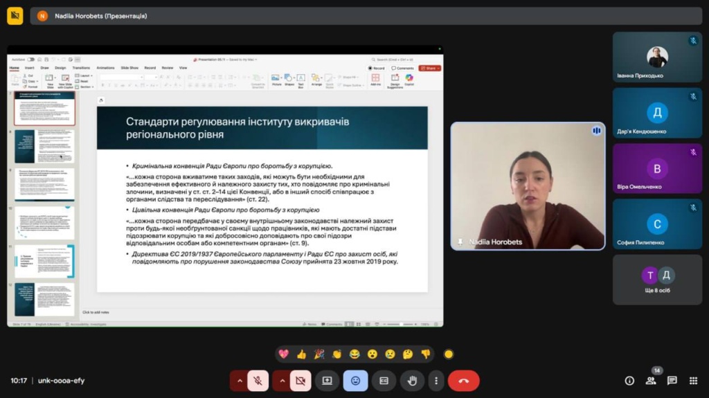 Захід пройшов у форматі відкритої дискусії: учасники ставили запитання, ділилися власним баченням проблематики та пропонували можливі шляхи вдосконалення системи захисту викривачів у нашій державі.