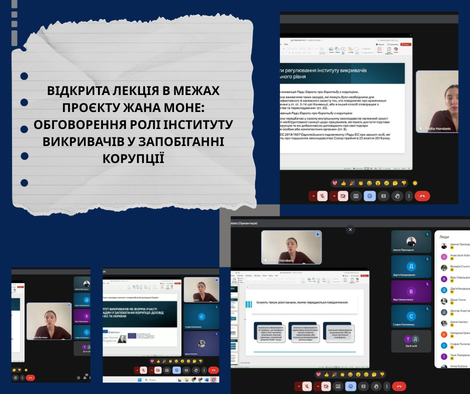 Під час лекції обговорювалися основні принципи діяльності інституту викривачів, його роль у формуванні ефективної антикорупційної політики та розвитку культури доброчесності. Особливу увагу було приділено європейським моделям захисту викривачів, процедурі повідомлення про корупційні порушення, а також законодавчим новаціям, які запроваджуються в Україні для гармонізації з практиками ЄС.