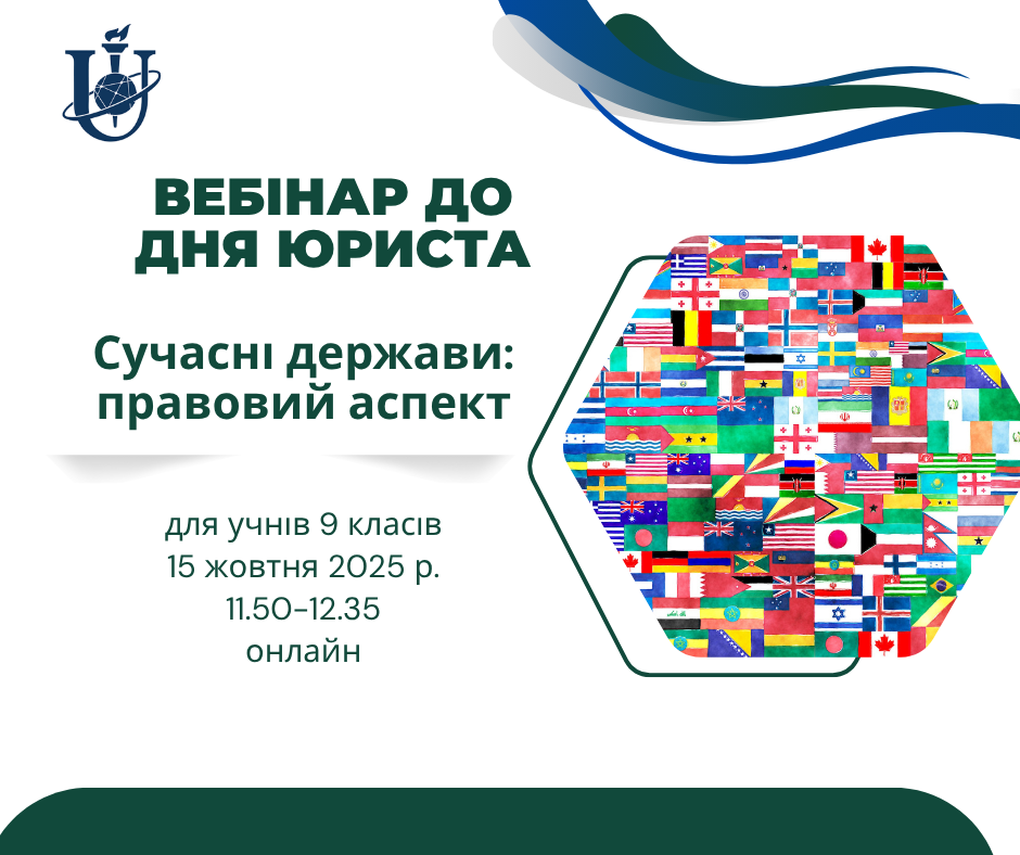 Кафедра фундаментальної юриспруденції та конституційного права запрошує учнів 9 класів доєднатися до вебінару «Сучасні держави: правовий аспект».